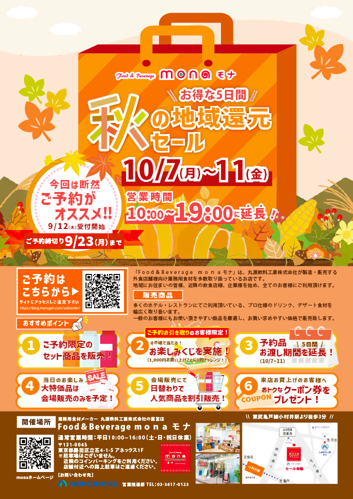 【10月7日〜11日】Food&Beverage mona モナ 秋の地域還元セール 2024