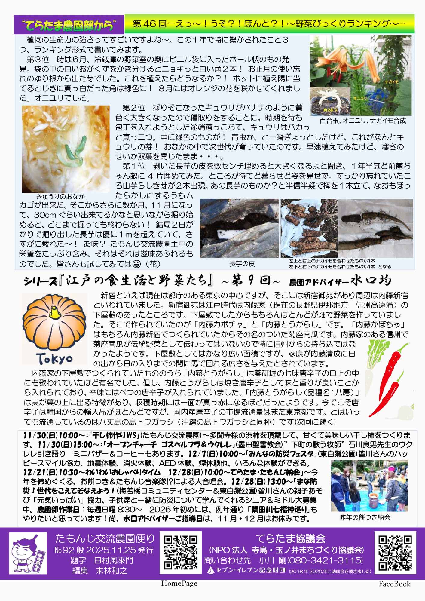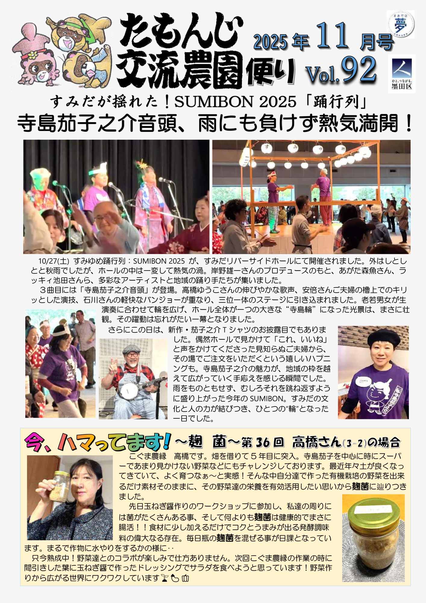 たもんじ交流農園便り Vol.92 2025年12月10日 最終更新日時 : 2025年12月11日 すみだノート たもんじ交流農園便り Vol.92ダウンロード 最新号「たもんじ交流農園便り Vol.92」が届きました。地域の農園での活動や、まちづくりの様子を感じられる内容となっています。上記よりPDFのダウンロード も可能です。ぜひご覧ください。 発行:寺島・玉ノ井まちづくり協議会編集:末林和之 アイコンリンク アイコンリンク Tweet おすすめ記事 たもんじ交流農園便り Vol.91 2025年11月8日 たもんじ交流農園便り Vol.90 2025年10月1日 令和6年6月6日「すみだノート展 2024」開催! 2024年6月5日