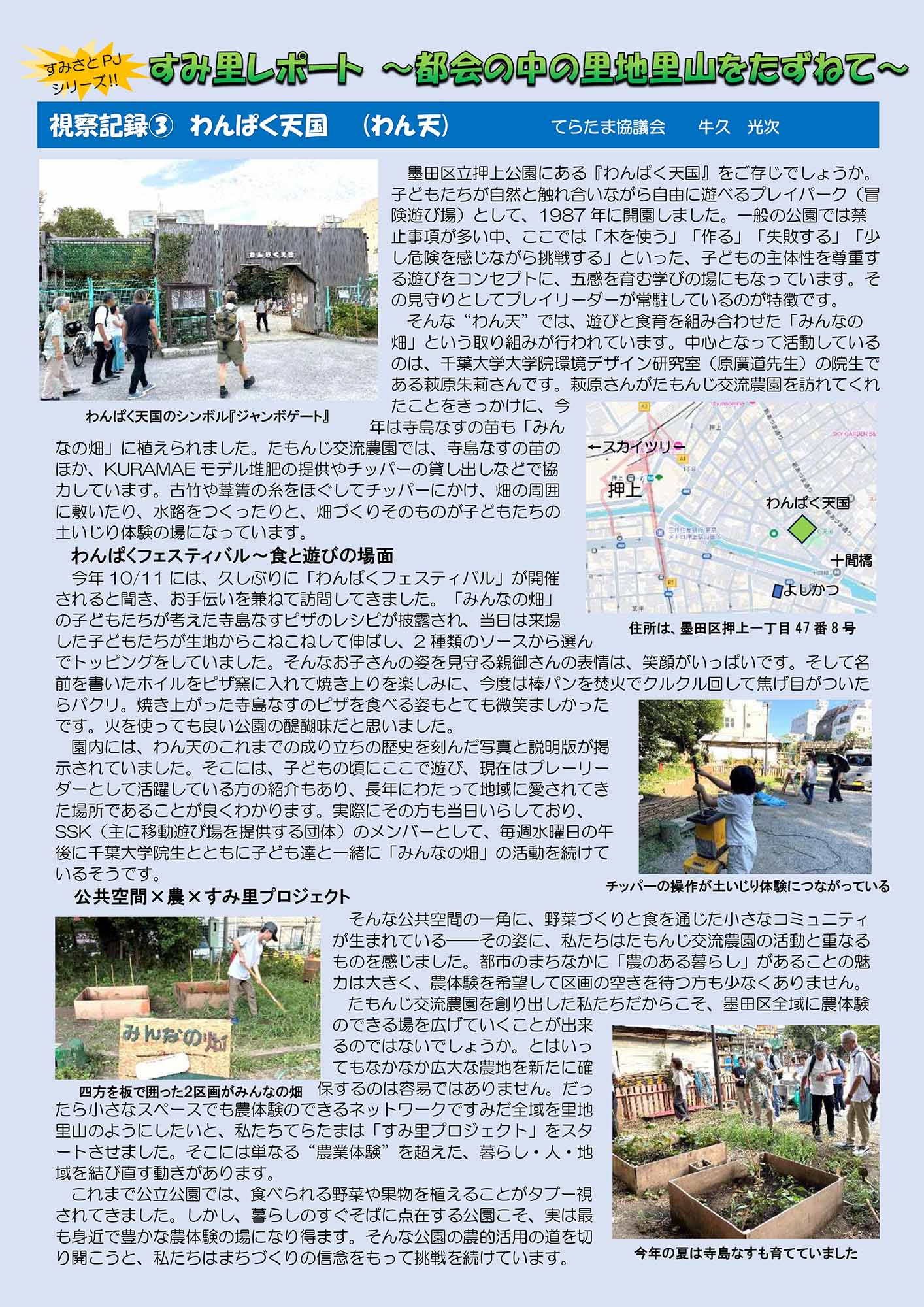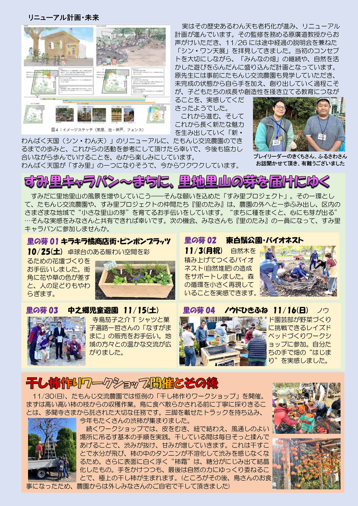 たもんじ交流農園便り Vol.93 2025年12月31日 最終更新日時 : 2025年12月31日 すみだノート たもんじ交流農園便り Vol.93ダウンロード 最新号「たもんじ交流農園便り Vol.93」が届きました。地域の農園での活動や、まちづくりの様子を感じられる内容となっています。上記よりPDFのダウンロード も可能です。ぜひご覧ください。 発行:寺島・玉ノ井まちづくり協議会編集:末林和之 アイコンリンク アイコンリンク Tweet おすすめ記事 たもんじ交流農園便り Vol.91 2025年11月8日 たもんじ交流農園便り Vol.90 2025年10月1日 たもんじ交流農園便り Vol.92 2025年12月10日 令和6年6月6日「すみだノート展 2024」開催! 2024年6月5日